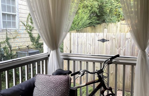 2 Bedroom Cottage with a spacious Kitchen, complete with a Keurig and Vita-mix. The living room opens up to the dining room and is complete with a comfy couch. Off the living room, is a fully furnished screened porch. A bike is included to enjoy the Beltline and park.