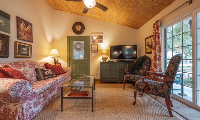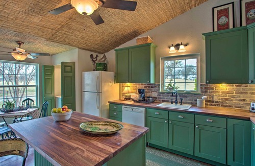 If you're looking for a country escape, then look no further than this charming Texas cottage! Just outside of Brock, and only 45 miles from Fort Worth, this 1-bedroom, 1-bathroom vacation rental is ideal for anyone seeking a weekend away from the city. There is much to explore out in the country, from Dinosaur Valley State Park to the beautiful Chandor Gardens in Weatherford. The country French decor and roaming horses make this casita feel like an authentic rural retreat!