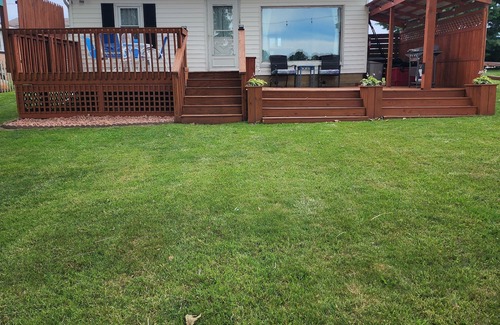 After an enjoyable day on the water you can take a short drive to an area restaurant to grab a bite to eat. There are several within 5-10 minutes in all directions. Or choose to cook in our fully equipped kitchen or even make yourself some smash burgers on the provided Blackstone Griddle. Afterwards, relax on the spacious lakeside deck or enjoy a campfire around the fire pit…..the S’more the better!!