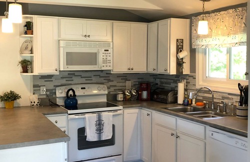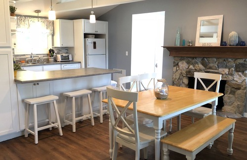 The newly renovated kitchen is stocked full with everything you may need from a Keurig for your morning breakfast to a blender for evening cocktails. It also includes a dishwasher so you don't have to do dishes on vacation:-) Help yourself to the coffee, tea, spices and condiments in the fridge.