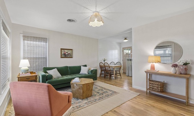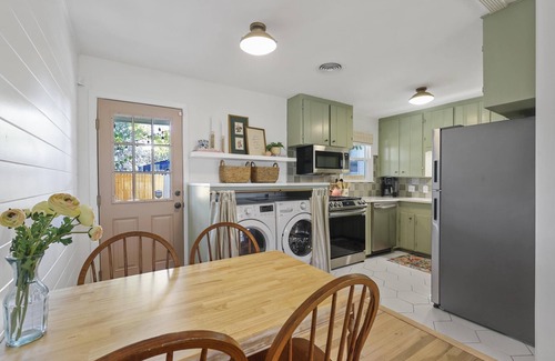 Welcome to our newly renovated two bedroom, one bath Fort Worth cottage. This property features a fully stocked kitchen, full size washer/dryer, luxury linens, TVs in each room, high speed wifi, and a small back patio with a propane grill perfect for outdoor dining. The property is located in a mixed use neighborhood off Camp Bowie Circle, within 15 minutes from Downtown FTW, TCU, & Dickies Arena, and 20 minutes from the FTW Stockyards.