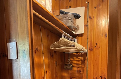The porch has two comfy sitting chairs and also a small outside dining set for two. We only allow up to 2 people to stay at the cabin, yet you can have two more over for a visit or for dinner. Just keep in mind the cabin is tiny because it is a real frontier cabin that has been upgraded with modern conveniences.