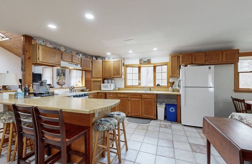 Inside, C-Haven has all the amenities you need for a comfortable stay. The spacious living area is ideal for relaxing after a day of adventures. The full, open kitchen features full-size appliances (no dishwasher). Plus, there's a gas grill for outdoor cooking. From a futon for extra sleeping space to a washer/dryer for convenience, this house has everything to make you feel at home. The summer breeze keeps the vacation rental cool in the temperate climate. Like most homes in the area, there is no air-conditioning.