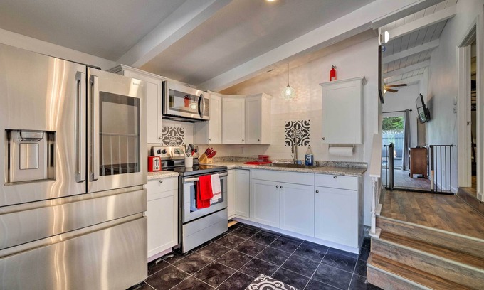 This charming house features 2 bedrooms and 1 bath, making it ideal for intimate weddings or pre-wedding gatherings. A well-equipped kitchen awaits you, complete with stainless steel appliances and all necessary dishware for any culinary endeavors. Enjoy cozy evenings in the living room with flat-screen Smart TVs, or unwind outdoors on the patio with seating and a gas grill for delightful cookouts. The home is pet-friendly, allowing you to include your furry friends as part of your celebration, and it provides essential amenities like free WiFi, air conditioning, and a washer/dryer for your comfort and convenience.