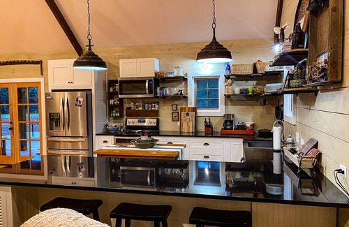 This charming cabin is located minutes away from the Historic Oxford Square and the University of Mississippi. Tucked away on roughly 120 acres you will enjoy the peace and tranquility that this cabin and property have to offer. The two porches on this house has the seating to accommodate you and your friends along with breathtaking sunrises and sunsets. Enjoy grilling on the Green Egg and Blackstone. There is no better way to disconnect and unwind than this cabin in the woods.