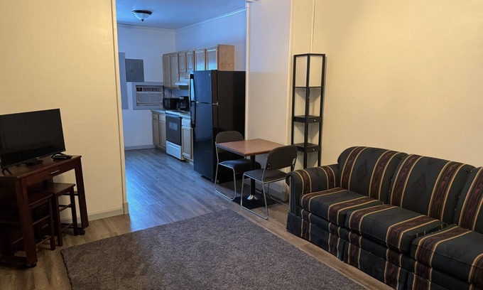 Enjoy the convenience of cooking while away from home. Kick back and relax in the living area. Quaint and quiet apartment located in a historic building. Street entrance, coded door keys, housekeeping per request.