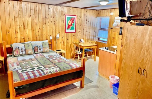 Quaint studio style Cabin, located right beside Crowsnest River, nestled in the Beautiful Crowsnest Pass. This cabin is located at the Lost Lemon Campground & Cabins, where you can enjoy a peaceful Mountain Getaway, and still be within walking distance to downtown Blairmore, where you can visit all of our local shops and restaurants.
