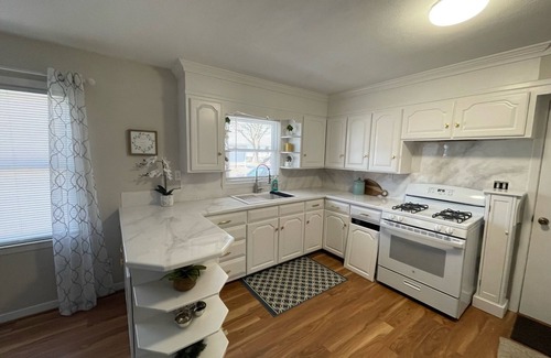 Get ready for relaxation and comfort in your "home away from home" in this 1950's remodeled home! With new queen beds, fully furnished living room including a smart tv, remodeled bathroom with luxury rainshower head, brand new appliances and freshly painted kitchen and epoxy countertops, we have your comfort in mind. There is also an attached garage that you may use.