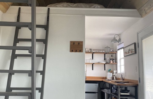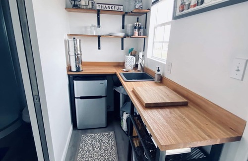 Whether you are looking for a quiet getaway or a unique experience being on a homestead, this is the place for you!!! This is a brand new rental that was built and designed for the sole purpose of providing space for travelers. During your stay, you will have access to a fenced in tiny home with privacy to enjoy the sunsets and your morning coffee. There are two lofts, one with a queen bed and the other with a twin bed. There is a bathroom and a small kitchen with mini fridge, toaster oven, and table top 2 burner stove. There is a television and blue ray for you to watch movies or you can use your personal hotspot to access Roku. You are welcome to walk around the rest of the property and see the farm animals. The sunsets and star-filled skies are unreal and we look forward to hosting you.