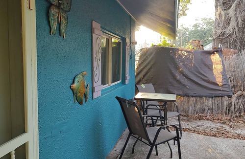 The tiny home that was before there were tiny homes! This charming carriage house comes fully equipped with a full sized kitchen, bathroom, bedroom and living room, as well as a backyard for relaxing in! With 400 sq feet of space, this place is great for a corporate rental, SCAD student or someone who is working nearby and needs a flexible lease. Outdoor cameras for security. Minimum stay is 30 days plus and has many amenities, including all of your utilities, high speed internet, so that you do not have to worry about things like deposits for electricity etc. Has on site washer and dryer and private entrance. Must see! This diverse neighborhood is being renovated although is pretty quiet. Many homes still have the old charm they had but are being updated in various stages.