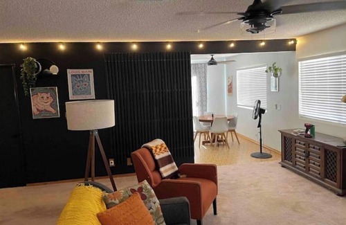 Make some memories at this unique and family-friendly home. Enjoy the mid century modern flare of this vintage themed home. On nearly an acre, you’ll be sure to find peace and quiet. Bring the whole family, this spacious 4 bedroom 2 bath sleeps up to 8! Located less than a mile away from great dining and grocery stores. Wake up and enjoy the view of the neighboring houses beautiful horses.