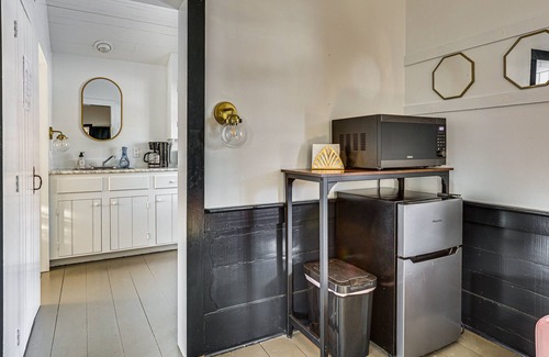 KITCHENETTE: Well-equipped w/ microwave, mini-fridge, drip coffee maker, dishware & flatware, slow cooker