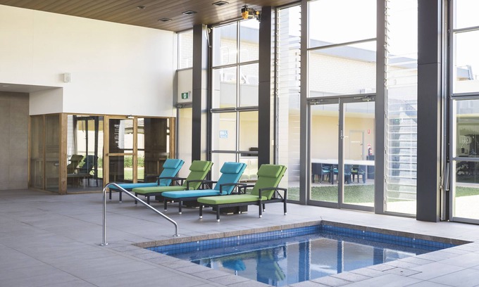 An indoor pool and a hot tub are on site. Other recreational amenities include a sauna and a fitness center.