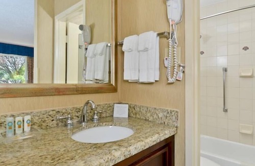 Recreational amenities at the hotel include a fitness center and a seasonal outdoor pool.