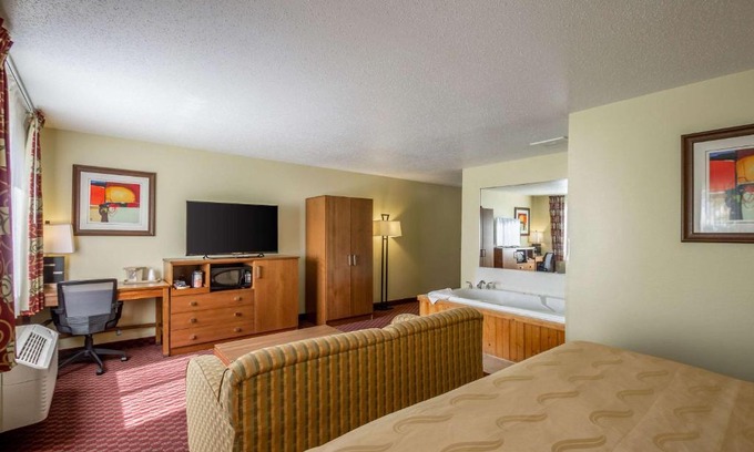 Best-rates for the Quality Inn Mineral Point starts from $89 per night with includes Air Conditioner, Parking, Pool, Private Pool, Child Friendly, Hot Tub, Internet, Laundry with all other amenities. Perfect for Weddings is committed to ensuring every guest experiences a comfortable and extraordinary stay, whether planning a romantic getaway, a honeymoon, a pet-friendly stay, or celebrating with the entire wedding party.
