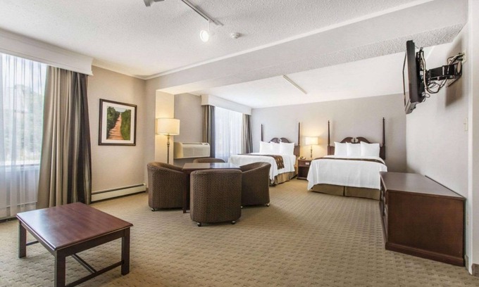 Your stay at Quality Inn & Suites Downtown ensures that you and your guests enjoy a range of convenient amenities. Start each day with a complimentary full breakfast before heading out to celebrate. The property features spacious rooms equipped with premium bedding, air conditioning, and modern conveniences such as 40-inch LCD televisions. Additional offerings include free Wi-Fi throughout the hotel, laundry facilities, and a business center that can accommodate any last-minute tasks or arrangements. Enjoy coffee and tea available in the common area while mingling with loved ones in a relaxed setting.