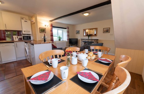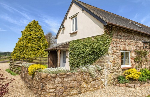 Quarme Cottage boasts a captivating south-facing view down the Quarme Valley. There's an open-plan living, dining, kitchen area and a secure garden equipped with outdoor furniture. In front of the cottage there's a vast grassy space nestling beneath a majestic beech tree, offering sweeping countryside vistas, space to run around and play.