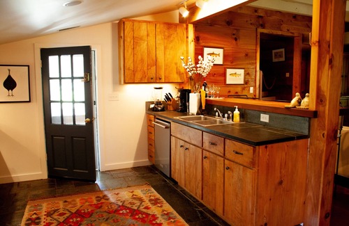 This historic home (originally built in 1805) is located on a working horse farm just south of Charlottesville. It was recently restored in 2007 and updated to keep the historic, yet cozy cabin-esque feel, with all of the modern amenities. All of the wood used throughout the restoration (from kitchen cabinets to porch floor) is sourced right from Quiet Entry Farm and milled from the sawmill located up the hill from the house.