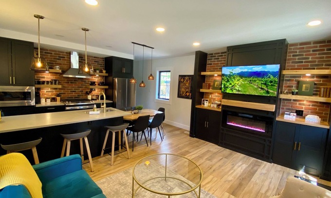 Good vibes & good times await in the stylish, newly renovated house designed with comfort and amenities that are sure to impress. Whether loungingin front of thefireplace &smart TV (Netflix incl.), playing board games, or gathering around the large kitchen island, the open concept living area is great for connecting with friends &family. The kitchen is fully stocked and ready for preparing &serving full-course meals.