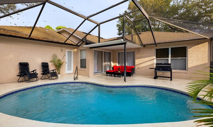 Super calming and cozy guest suite just MINUTES from ALL attractions! This suite with private bathroom, WiFi equipped POOL home is perfect for your CENTRAL FLORIDA vacation! With all major theme parks minutes away!