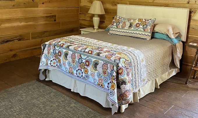 A unique one room cabin. With a queen size bed, small love seat, and chair. Kitchenette has a small table with two chairs. Equipped with small refrigerator, microwave, small coffee maker. Set out on the porch where you can see and hear the water of the pond, it very relaxing. Parking is steps away from the front door of the cabin. You can enjoy the landscape and walking paths around the property anytime.