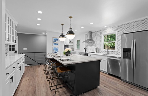 * Two fully stocked kitchens with everything you need to create culinary masterpieces, one on the main level and one on the lower level.