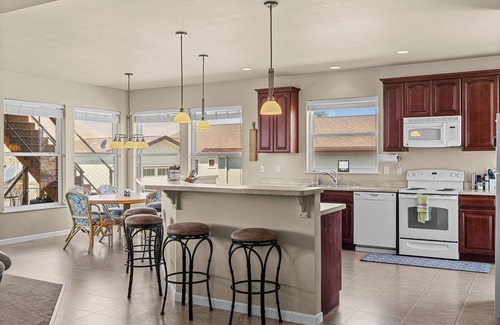 Well-stocked kitchen with equipment to cook up some great meals such as an electric griddle, blender, food processor, and crock-pot. Also, a drip coffee pot with an automatic bean grinder to make the perfect pot of coffee.