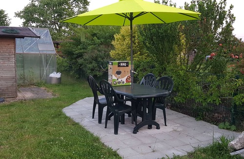 Guests have a complete apartment for themselves with a separate entrance from the parking lot. Gardenmice use is also possible. The barbecue area is fully equipped with garden furniture, parasol and barbecue. A large trampoline is available for the children.