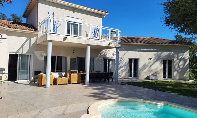 Quiet, air-conditioned villa with private pool 5 minutes from sea and mountains is located in Morta. Quiet, air-conditioned villa with private pool 5 minutes from sea and mountains provides accommodation, featuring Pool, Designated Smoking Area, View, among other amenities. This Villa features Pool, Designated Smoking Area, View, to make your stay a comfortable one.