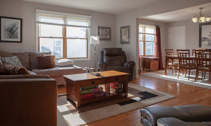 Guests may access the living room, 70" TV (Netflix, Disney+, Amazon Prime), fully stocked kitchen, appliances (coffee maker, etc), laundry, bathroom, private deck and driveway for parking.