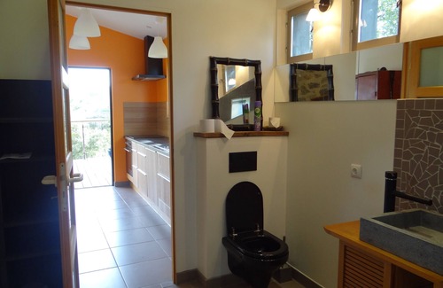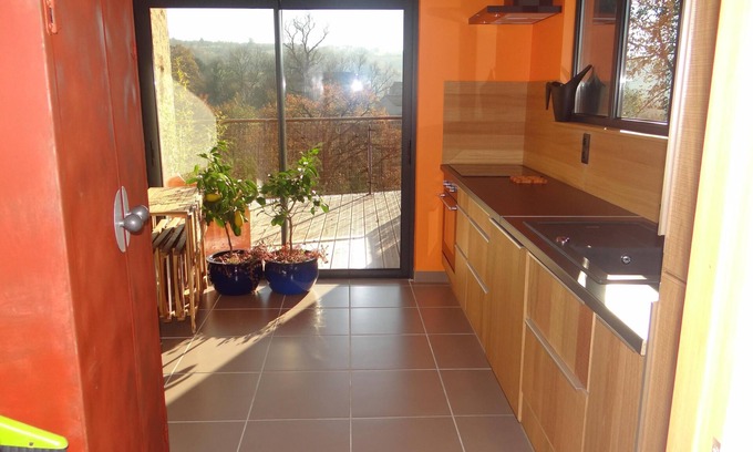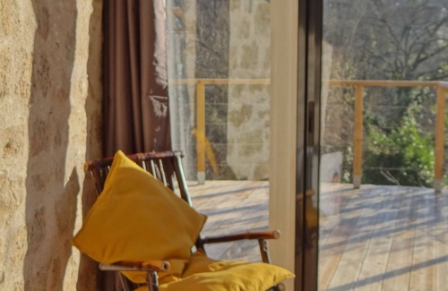 Located in the farmhouse of the Causse, a typical and very quiet hamlet overlooking the Lot Valley, between Quercy and Rouergue. This old house renovated in 2013, equipped with quality equipment includes: 1 large room with a comfortable sofa for 2 persons, 1 bedroom bed 140, 1 large bathroom with Italian shower, 1 kitchen opening onto a large sun terrace with panoramic view of the valley.
