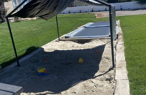 Once a thriving Dairy the building was renovated in 2020 into a single home dwelling and apartment in the back of the building. It's all one level! Guests have access to a playground to get the wiggles out of the littles and a giant patio. It is located in a quiet neighborhood with a spectacular view Mount Loafer out the bedroom window.