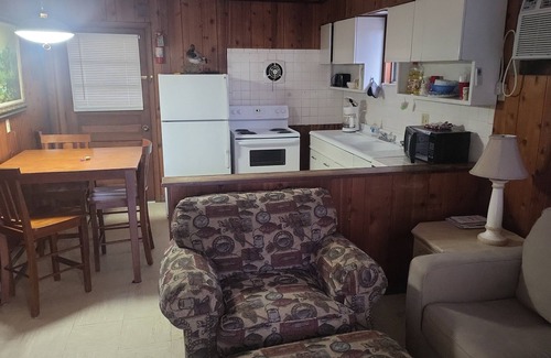Cabin 6 at Fish Island Resort is a cozy two bedroom cabin with full kitchen and a living space. Over sized full bed in one bedroom, 2 twins in the other. It has a full size sleeper sofa in the living room. It's located in our small family owned and operated resort at Lake Barkley. Nightly rate includes access to the Lake Barkley State Park fitness center (about a 5 minute drive from the cabin) complete with heated indoor pool, full gym, sauna, steam room, hot tub.
