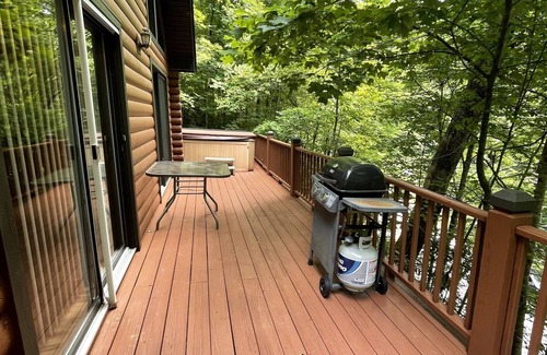 Perfect getaway and very peaceful area! Enjoy the different seasons and the amazing weather! Have s’mores over the fire pit and drink coffee/hot chocolate on the balcony while listening to the water flow from waterfalls and the creek. The cabin is ready for you to visit! 4x4 recommended due to steep driveway. Grocery store is a 15-20 Dr. NOTE: Do not drive up Azalea Ridge the cabin is located on Wayah RD. across the road from small dam. Hot tub temporarily out of order.
