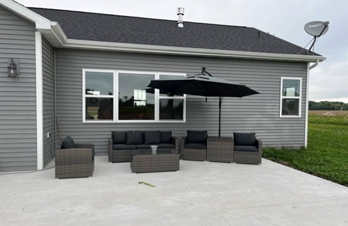 Your EAA home away from home for the week! House built in 2021 located in the country 11.5 miles away from EAA grounds. Relax on the secluded patio after a long day or lounge around inside with the air conditioning. This home comfortably accommodates 6 guests.