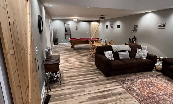 Quiet and secluded located close to Ft. Leonard Wood and also many outdoor activities. Close to the Gasconade river, Mark Twain National Forest, and a short drive to Lake of the Ozarks and Bennett Springs state park. Property has a spacious great room with two comfortable couches, 65 inch TV, wifi, and pool table, great for family and friend gatherings. Outdoor fire pit with firewood included. The property has a beautiful view of the woods and has an abundance of wildlife.