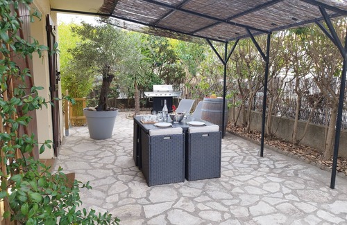 Ideal for two, can accommodate up to 4 people. Air-conditioned apartment, completely renovated, fully equipped, quiet and comfortable, with a large terrace with barbecue, perfect for sunny breakfasts. Close to amenities and close to the village center, 15 mins from Perpignan and Collioure and 5 mins from the beach and the Albères range. Ideal for exploring the beautiful Catalan country thanks to the many possibilities for outings and outdoor activities. The accommodation Quiet and bright apartment, with a very large terrace where you will love to relax and have breakfast or enjoy the Barbecue. This apartment has a beautiful exposure and is completely renovated and air conditioned. It is equipped with a bathroom, a separate toilet, a fully equipped kitchen with microwave, oven, ceramic hob, fridge, worktop, Dolce gusto coffee maker, toaster .. and a living room with tv, desk and a fully furnished bedroom. Enjoy very high speed wifi access. Your bedroom has a 140 bed, high-end bedding and a wardrobe. You can also use the Salon's convertible sofa as extra bedding. You can watch TV or work with your computer in the living room. Sheets and towels are provided: towels and tea towels as well as various basic necessities. On your arrival, you will find sodas, water, coffee, tea, herbal tea, chocolate powder, milk, butter, jam, rusks, etc. To cook, you have also basic products: salt, pepper, sugar cubes, powdered sugar, flour, various spices, oil, vinegar ... For daily maintenance, all the necessary products are available: washing up liquid, various cleaners ... In the bathroom , you will find shampoo, soaps, handwash product ... 200 m from various local shops (bakery, grocery store, bank, village bistro, newsagent, restaurants, and the local market ... On the day of your arrival, you will be greeted and take possession of the suite between 2 p.m. and 11 p.m. The apartment must be vacated by 11:00 a.m. on the day of departure. You have free parking available. You can park your bike in a locked room in the house. A bus line runs near the apartment in the direction of Perpignan or Argelès sur Mer and its station. If you are arriving by train or plane, we can pick you up at the station or the airport. Minimum stay: 2 nights We look forward to meeting you! Exchanges with travelers I remain at your disposal to provide you with all the information necessary for the comfort of your stay. Other remarks I Speak English. Standard Air conditioning Basic amenities Towels, sheets, soap and toilet paper Heating Central heating or electric heater Iron Laptop workspace A table or desk that can accommodate a laptop, and a chair for working TV Washing machine In the building, free or paid Wi-Fi Permanent access to the accommodation Facilities. Free parking on site Single storey No stairs in the accommodation Free parking on the street Catering Coffee maker Basic kitchen utensils Pans and pans, oil, salt and pepper Crockery and cutlery Kitchen Space where travelers can cook Microwave oven -waves Refrigerator Oven Stove Bedroom and bathroom Hair dryer Hangers Shampoo Exterior Barbecue Garden or backyard