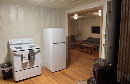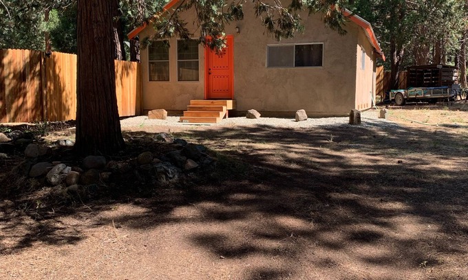 Our newly renovated1935 cabin in the woods is waiting for you and partner to slip away. The cabin has a living room, dining area, stocked kitchen, bedroom with brand new bed and full bathroom; offering everything you need to hide away and relax. The cabin is located behind Sierra Sky Lodge, Family Style Bed and Breakfast, giving you access to their seasonal heated swimming pool, firepit, horseshoes and badminton court. A home cooked breakfast can be added on for an addititonal fee of $25per day/ per couple.