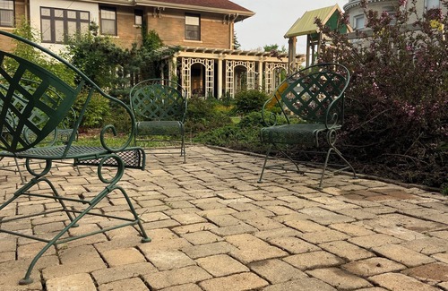 Outdoor space features a large yard with a patio near the carriage house, covered porch, grill, bbq pit, bocce court, and outdoor living room. We have a dog, Louie, and are comfortable communicating with guests who do not like animals or whose own pets need extra space