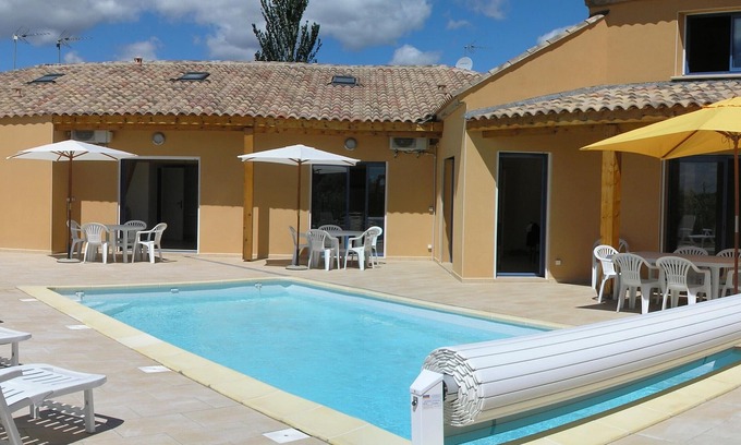 very pleasant villa built in 2006. very wide terrace with barbecue, private swimming pool equipped with an electric roller blind, and outside shower. situation in limit of village, offering independence, peace and shopping facilities