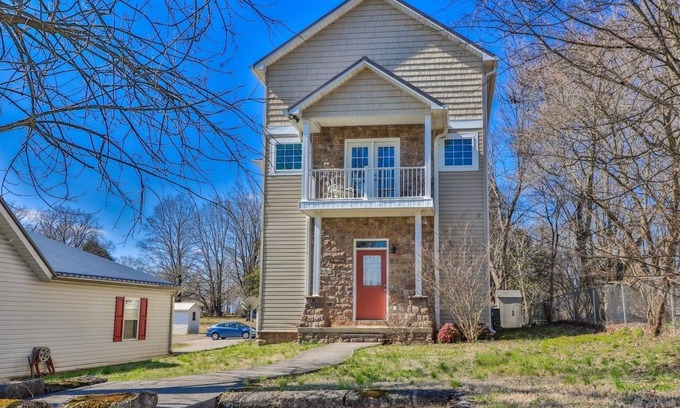 The "Skinny House" is a comfortable, modern home that is perfect for family or group get togethers, remote workers, vacationers, and campus visitors. Carson Newman U Cherokee Lake, Dollywood, Gatlinburg, Smoky Mountains, and downtown Knoxville are all nearby. The home features 3 stories and 5 bedrooms, each with a private bathroom, a walk in closet, a desk, a Roku TV and a walk out patio. Enjoy the living area with a TV, dining area, coffee bar, a fully equipped kitchen with stainless steel appliances and laundry room.