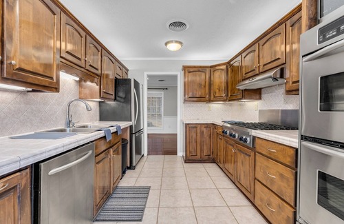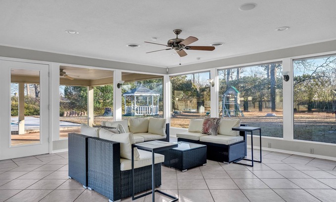 Escape your worries in this spacious and serene retreat. Nestled in the back of a quiet neighborhood, this beautiful home offers plenty of space for the entire family, plus a charming Mother-in-Law Suite right next door. You'll enjoy close proximity to excellent schools, dining, and shopping options. The home features stunning bay windows that flood the interior with natural light, creating a warm and inviting atmosphere. The great back patio is perfect for family gatherings, BBQs, or simply unwinding after a long day. Whether you're looking for a peaceful getaway or a convenient base for exploring the area, this home provides the ideal setting for unforgettable family togetherness.