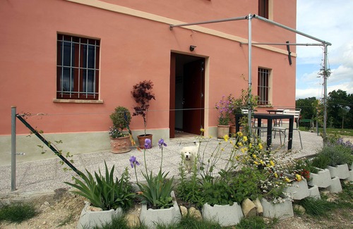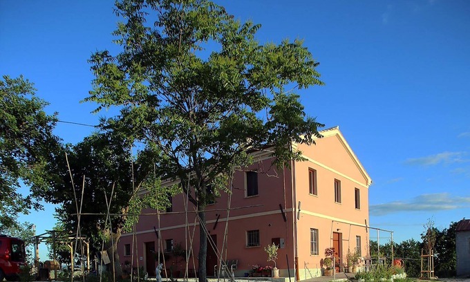 Casa Padronale "i quindici alberi" is located in the heart of the gentle hills of the province of Ancona. Panoramic view over vineyards and olive groves to the sea and up to the highest mountains of the Marche. Fully wheelchair-accessible with great kitchen line (dishwasher, coffee machine, ...) and natural surroundings, including large swimming pool. Large private terrace. The romantic town of Serra de 'Conti with all shopping is only a ten minute walk away. The surrounding area offers everything for nature lovers and leisure sportsmen. The best wines of the brands grow directly in front of the front door. Very quiet location, no noise and no big street nearby. The apartment is original rustic renovated in the style of the farmhouse of the free farmers of the Marches. Two extra beds are available on request, and all necessary furniture for toddlers (bed, treadmill, high chair) can also be hired if required. With basic "Bed & Breakfast" or as a pure self-catering apartment to rent according to agreement. Reserved parking spaces for passenger cars. Pets Allowed. Also well served by public transport.