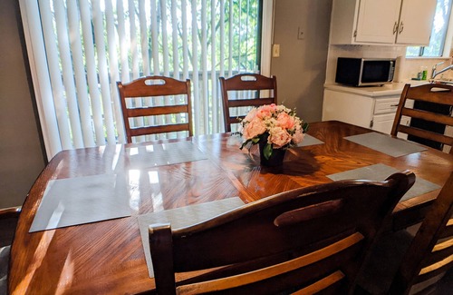 When planning your dream wedding, the Quiet, comfy and spacious 3 bedroom home in KC provides an excellent base for you and your guests. With ample space and modern amenities, you'll find everything you need to create lasting memories.