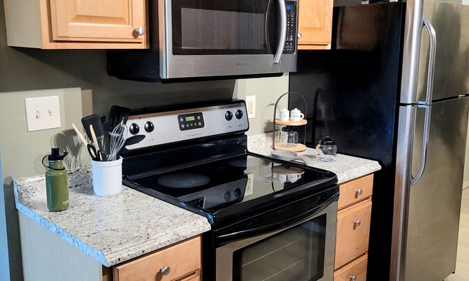 A quiet place to call home away from home. All utilities + wifi and monthly professional cleaning included. There will be a desk in both rooms with an additional monitor and adapter to tie into your laptop or workstation. Coffee will be ready for you to brew on day 1... other essentials to help get you settled in are also available, but that's the one worth mentioning! We hope you enjoy your stay and find time for work-life balance.