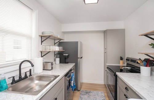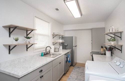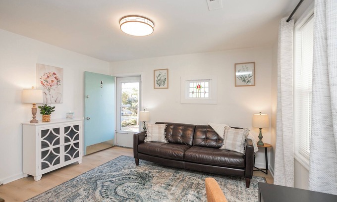 **30+ NIGHT STAYS ONLY** A newly renovated 2-bedroom cottage in quiet neighborhood! The natural light will warm your soul, and the decor will make you feel right at home. There's plenty of room to accommodate up to 4 people. The apartment has a full kitchen with all necessary utensils provided and a washer and dryer! Stay with professional hosts who have been doing this full time for 9 years!