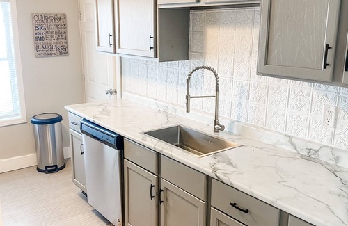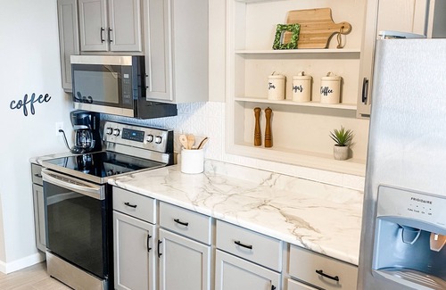 You will be staying in the middle of Amish country& love the easy access to all the shops, food, tourism,and all that Shipshewana has to offer! You will be within walking distance to The Pumpkinvine Nature Trail with miles of trails for biking, walking,etc! This cozy cottage has access to Ship Lake which is a great fishing lake! The Living Room and Dining room are very spacious,open concept and an awesome place to hang out with your family and friends! Living room has Dish Tv with a 65” flatscreen to relax and watch a movie or the big game! The Kitchen has new stainless appliances and is stocked with utensils,small appliances like toaster,blender,hot water kettle,air fryer,pots pans etc! The main level Bedroom has a King bed with chest of drawers and a closet for your clothes. The Full Bath is right outside the Master Bath and is stocked with towels,washcloths! The back entrance serves as a mud room, and has a Washer and Dryer for your use should you need it. Going upstairs (side note,the upstairs was an add on so the stairs are narrow) you will have a landing room that has a Full bed and also a Sofa couch that easily flips out to a bed perfect for kids to sleep on. The landing room has a Flatscreen that also has Dish Tv so your kids can watch their own shows while you watch yours in the Living Room! The upstairs also has a Bedroom with a queen Bed! More sleeping options are available in the living room,the couches are pullout hide a beds! So come to small town Indiana, unwind and make some memories at the HooK Wine&Sinker!!