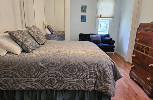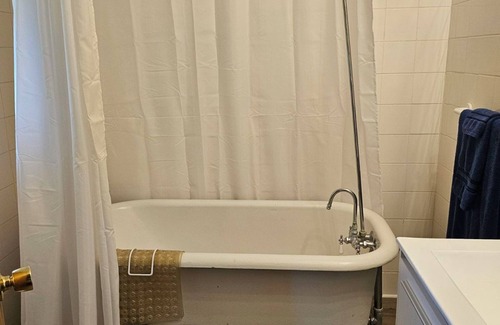 Country farmhouse has 3 bedrooms, 2 baths. One bath has claw-foot tub/ shower, the second one a new shower.