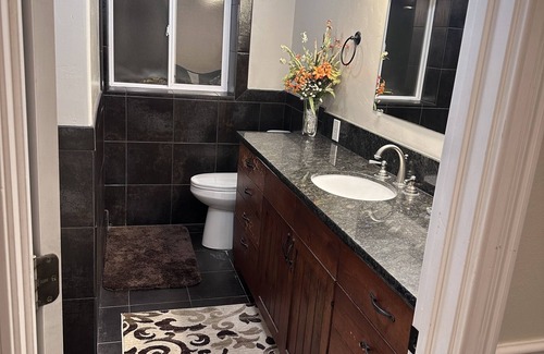 I have a private entry basement apartment that has a full kitchen with a dishwasher full fridge, a washer, and a dryer. Full big living room and three bedrooms can sleep up to 8 people. Has a full bath with a shower.