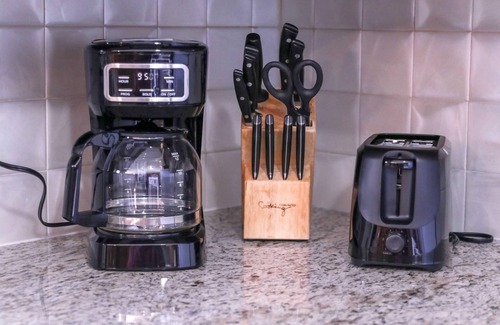 The kitchen contains all essentials for cooking as well as some cooking basics like oil, seasonings, etc. You will also find a new coffee pot, with complimentary coffee included (it can be found in the refrigerator), a toaster, and microwave.